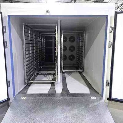 2. مصمم للتجفيف الموحد: يتميز بنظام دوران عالي الحجم مدعوم بمجموعة من 6 مراوح للخدمة الشاقة تولد 3000-4500 متر مكعب/ساعة من تدفق الهواء المستمر. قنوات الأرضية الهوائية تدفع الهواء الجاف بالتساوي عبر جميع الصواني الـ 180 في وقت واحد، مما يمنع العفن الموضعي أو التجفيف غير الكافي.