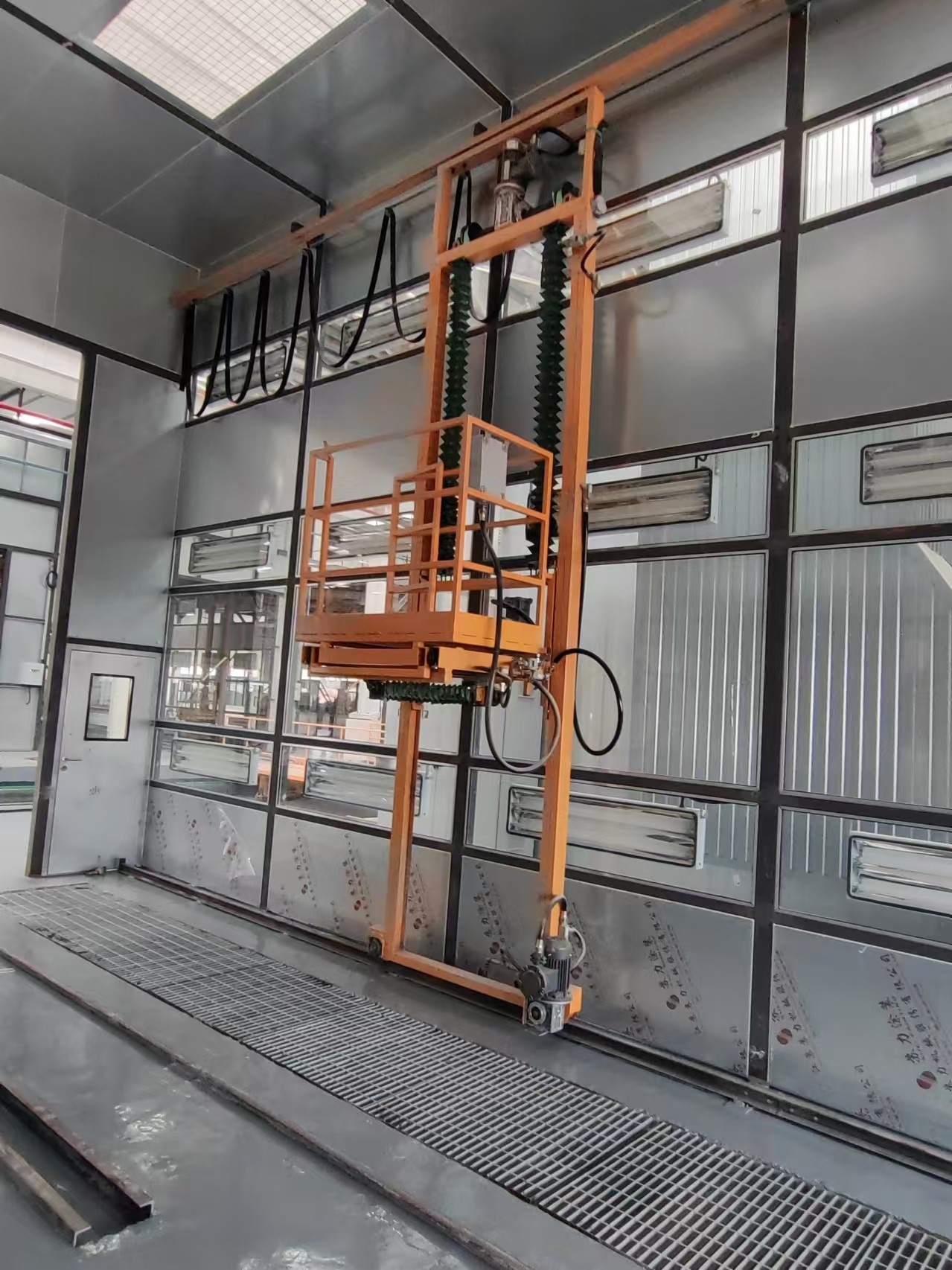 الملخص التنفيذي: الوصول إلى كل زاوية. بأمان. لا ينبغي أن يتضمن طلاء سقف الحافلة أو الجزء العلوي من جسم الطائرة سلالم أو سقالات خطرة. رافعة الرجل ثلاثية المحاور CoatTech هي قفص مثبت على الحائط، يعمل بالهواء المضغوط بالكامل، وينقل الرسام الخاص بك في ثلاثة أبعاد: يسار/يمين (X)، أعلى/أسفل (Y)، وداخل/خارج (Z). يوفر منصة مستقرة ومريحة تسمح للمشغل بالانزلاق بسهولة حول قطع العمل الكبيرة، مما يضمن مسافة ثابتة لبندقية الرش وجودة تشطيب فائقة.