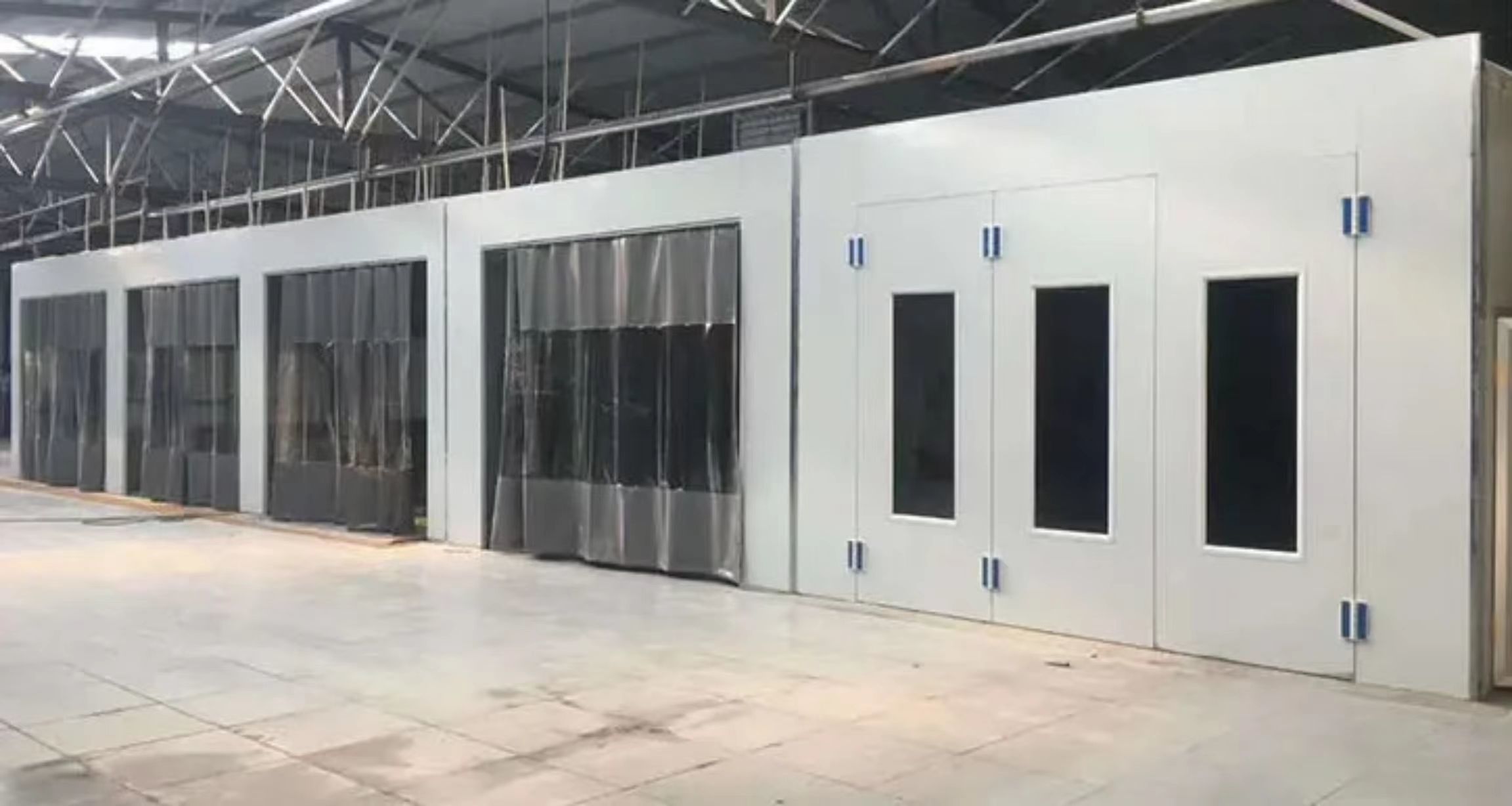 تصميم تدفق الهواء (شبه سفلي)يتم سحب الهواء من ورشة العمل عبر فلاتر الحجرة العلوية (تنظيف الهواء)، وينتقل إلى الأسفل فوق السيارة لالتقاط غبار الصنفرة ورذاذ البرايمر، ويتم طرده من خلال الجدار الخلفي أو حفرة الأرضية. هذا يضمن أن يتنفس الفني هواءً نظيفًا.